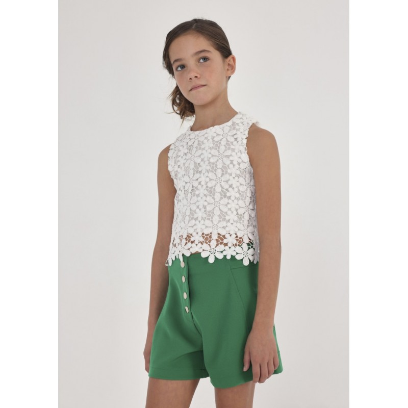 Top sin mangas para chica. Cuello redondo. Cierre con cremallera en la parte trasera para una puesta ágil y rápida.