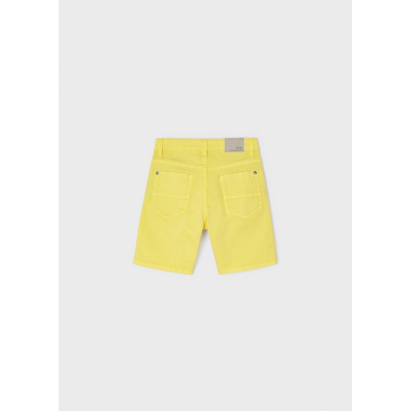 Prenda ECOFRIENDS, contiene algodón sostenible. Pantalón de tipo bermuda para niño. Cierre con cremallera y botón. Bolsillos funcionales en el delantero y en la parte trasera de la prenda.