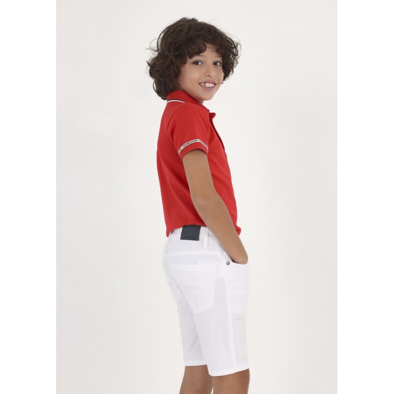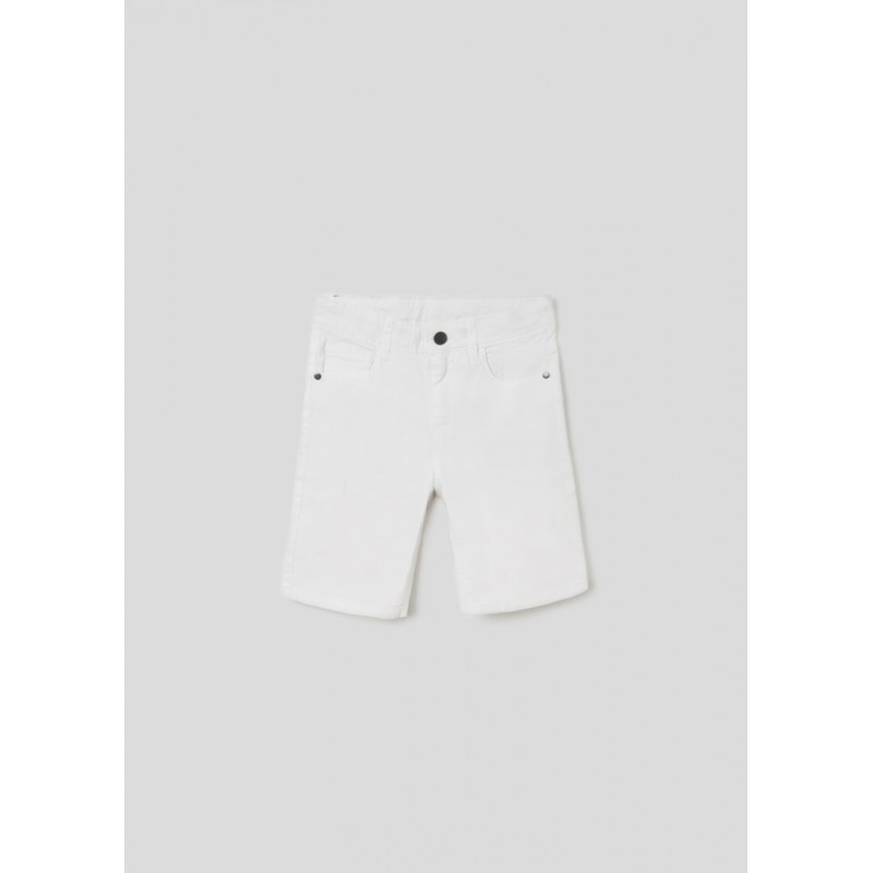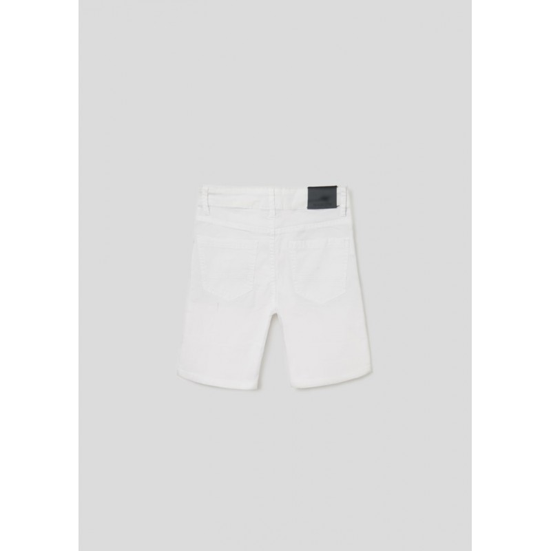 Prenda ECOFRIENDS, contiene algodón sostenible. Pantalón de tipo bermuda para chico. Cierre con cremallera y botón. Bolsillos funcionales en el delantero y en la parte trasera de la prenda.