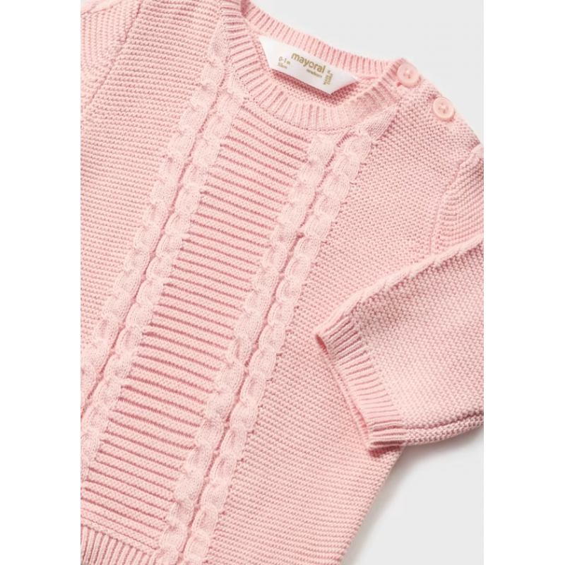 Jersey de manga larga para recién nacido. Cierre con botones en el hombro. Tejido 100% algodón. Tejido de punto tricotosa fino de tacto suave y agradable. Elementos de adorno: detalles trenzados.