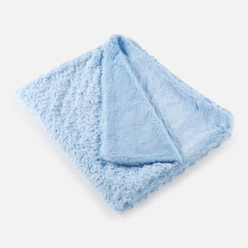 Cálida manta infantil de gran suavidad, con la que tu bebé se sentirá abrigado y protegido en sus momentos de descanso. La cara exterior está bordada con rosetones. Suave y gustoso tejido interior de pelo. Elementos de adorno: cinta decorativa. Este artículo tiene unas dimensiones de 80 Ancho x 100 Largo cm.