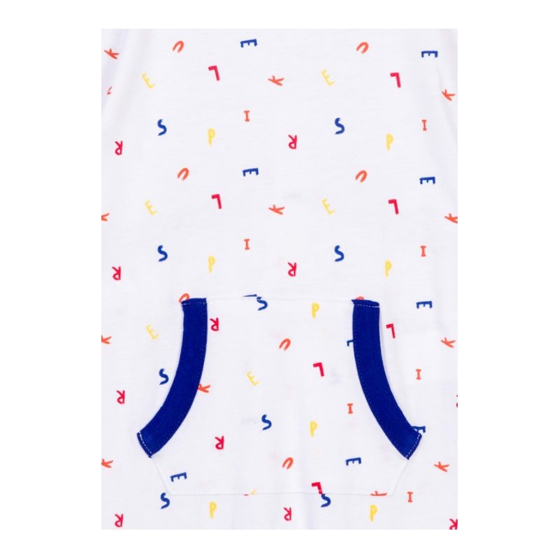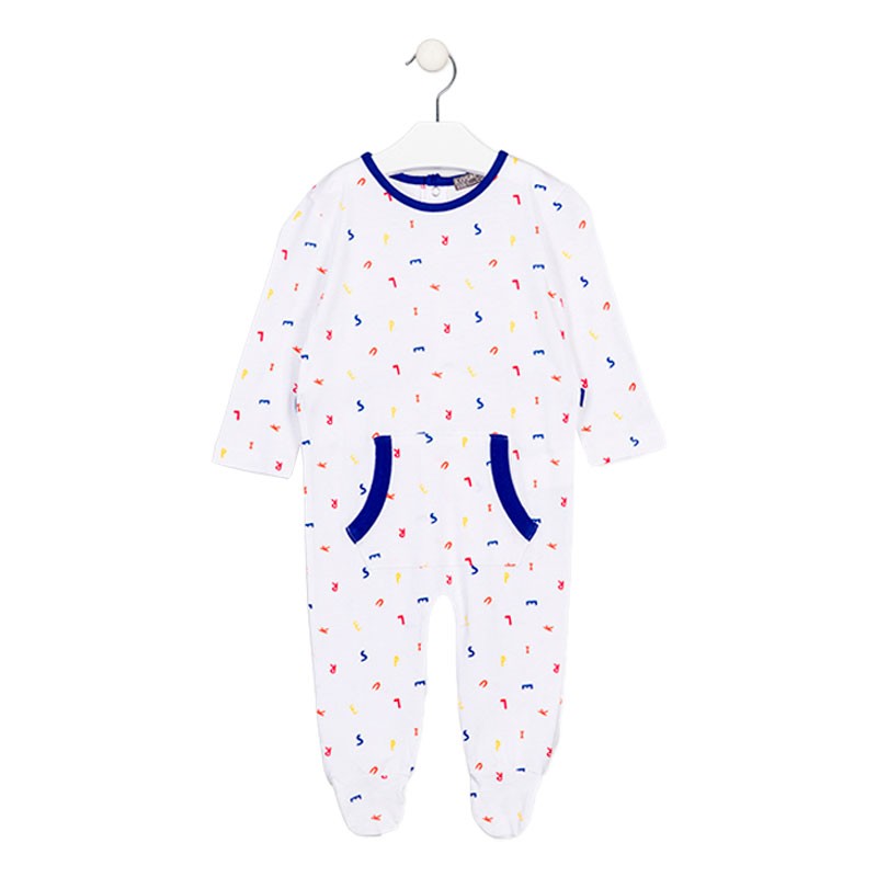 Pijama con estampado de letras para bebé niño. Pijama de punto de manga larga con bolsillo canguro en el delantero. Con vivos en el cuello, en abertura de bolsillo y abertura trasera. Con abertura en espalda hasta cintura.