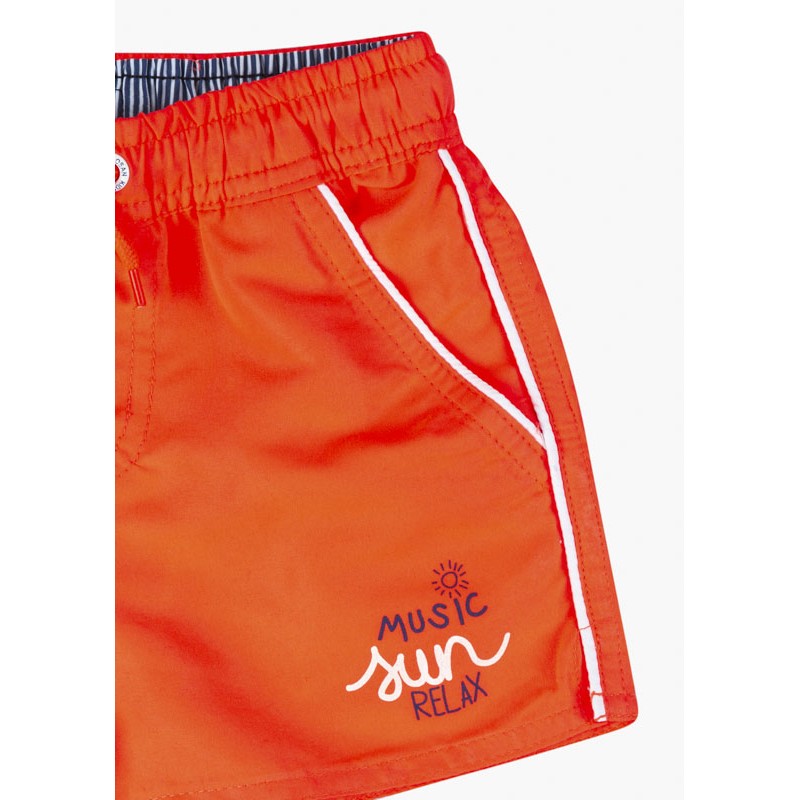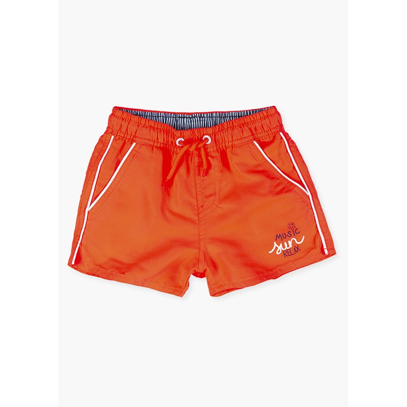 Bañador de microfibra con mensaje para niño. Bañador con cintura elástica. Bragueta simulada. Cordón ajustador en la cintura.