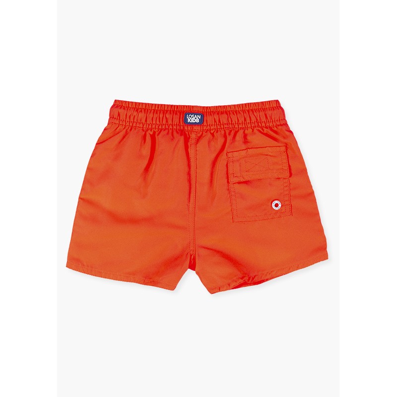 Bañador de microfibra con mensaje para niño. Bañador con cintura elástica. Bragueta simulada. Cordón ajustador en la cintura. Con suspensorio. Bolsillo en la parte posterior con solapa con velcro. Etiqueta de marca en la cintura trasera. Disponible en varios colores.