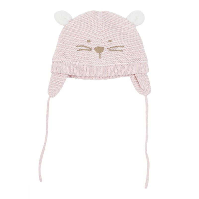 Gorro con orejas para recién nacido niña. Gorro de tricotosa con bordado haciendo cara de animal. Con adorno de orejas. Con cubre orejas y cordón para ajustar. Con forro en punto liso. Disponible en varios colores