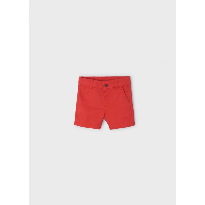 Pantalón de tipo bermuda para bebé niño. Bragueta simulada. Goma elástica regulable en la cintura para ajustar el talle. Cómodo tejido de sarga de gran resistencia. Bolsillos en los laterales.