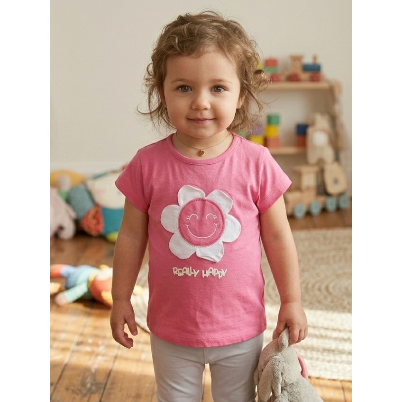 Camiseta con estampado de flor en el delantero para bebé niña. Camiseta de manga corta . Tejido de algodón. Cuello redondo.