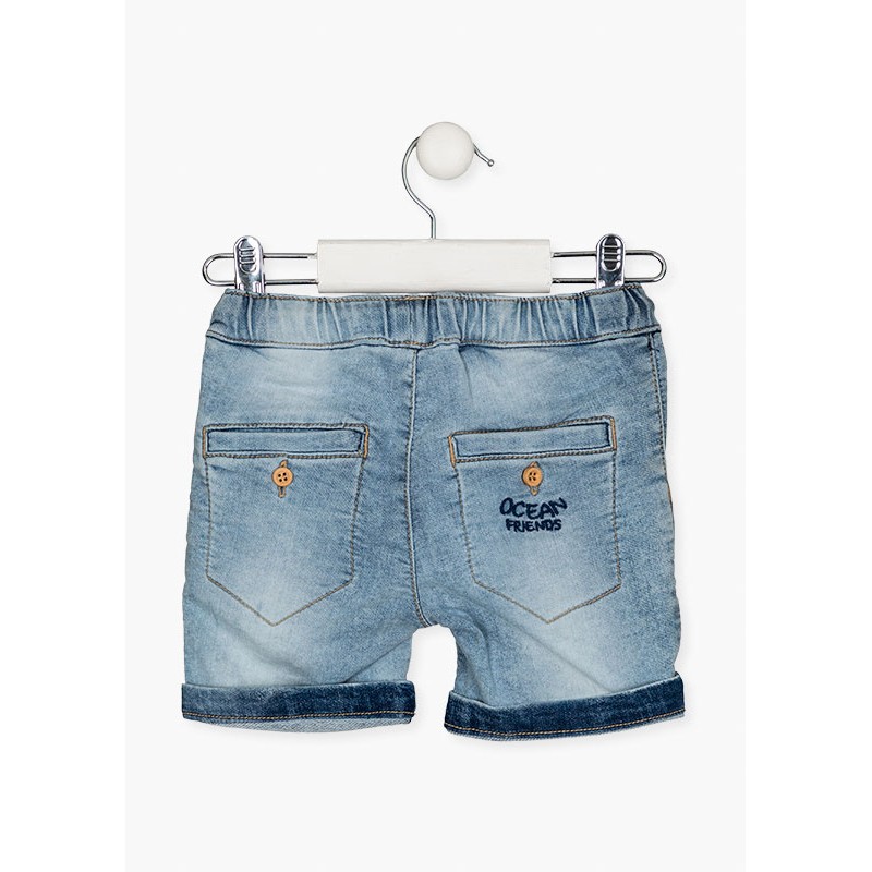 Pantalón corto de algodón estampado azul pálido, bolsillos, cintura elástica ajustable, bajo en la parte inferior