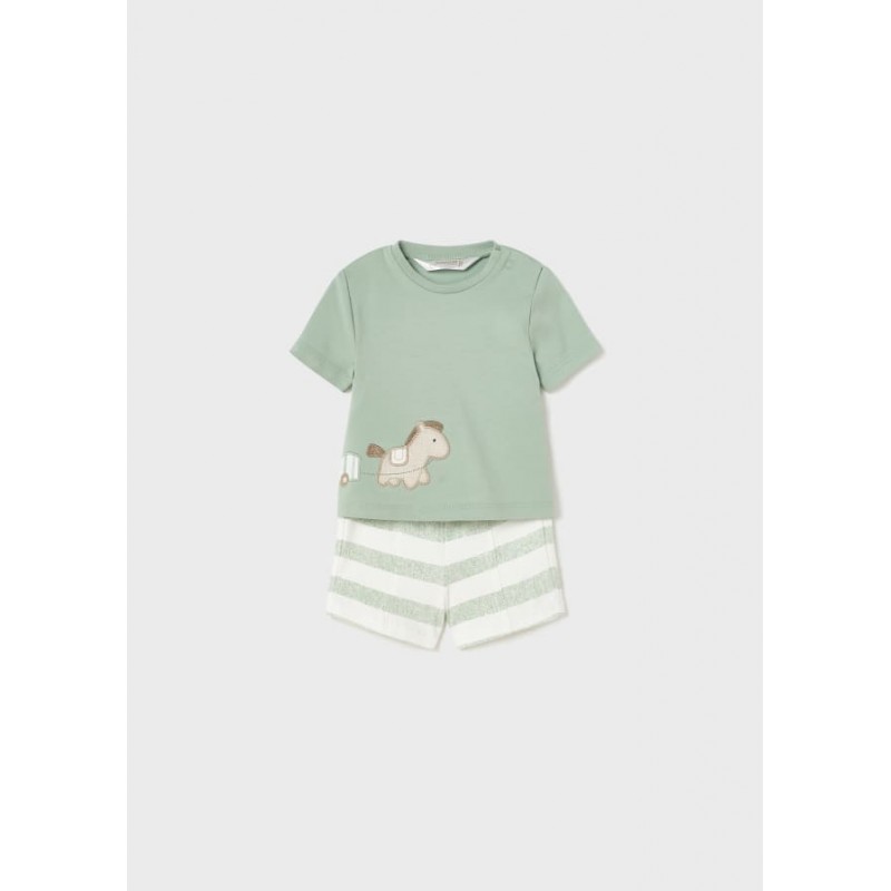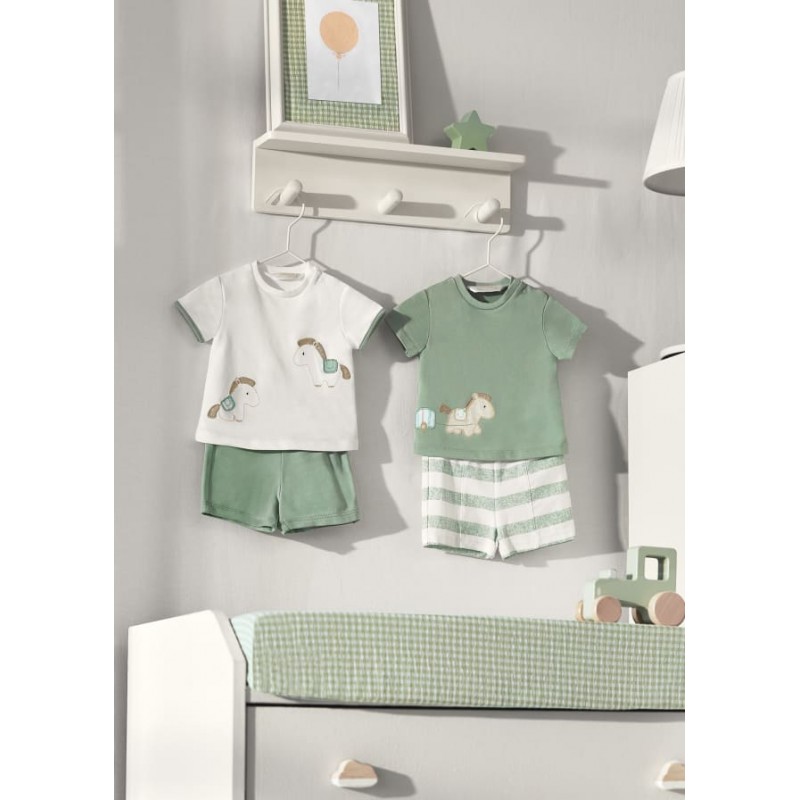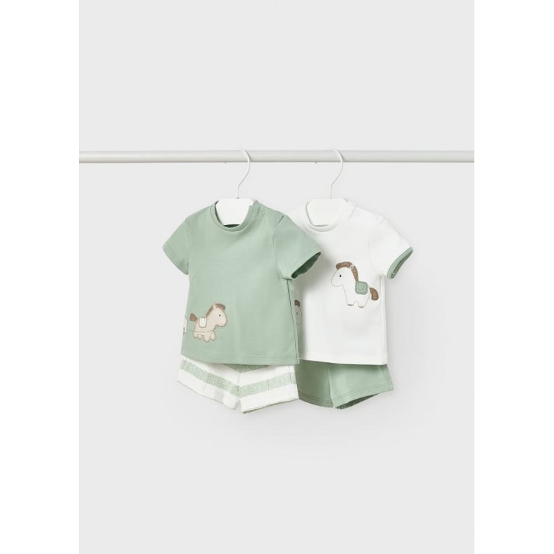 Set de cuatro piezas para recién nacido formado por dos conjuntos de camiseta de manga corta y short combinables.