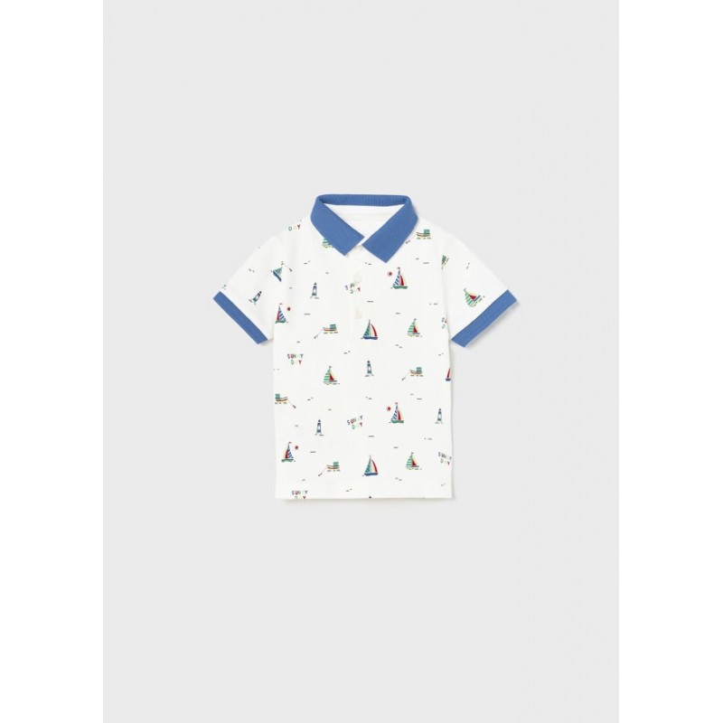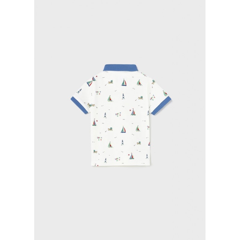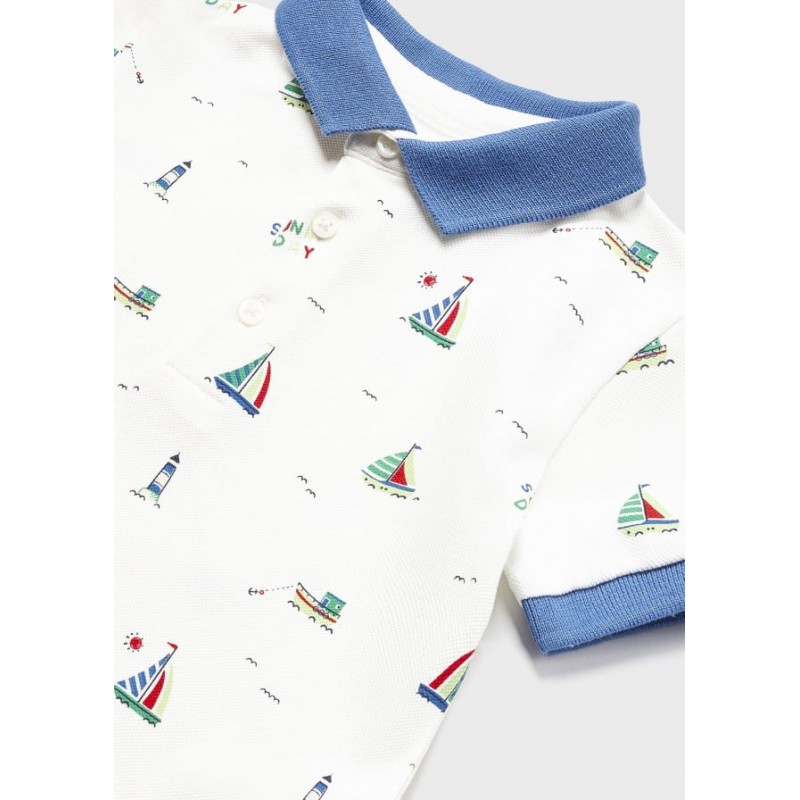 Prenda ECOFRIENDS, contiene algodón sostenible. Polo de manga corta para bebé con detalles a contraste. Cuello de polo con detalles. Diseño estampado.