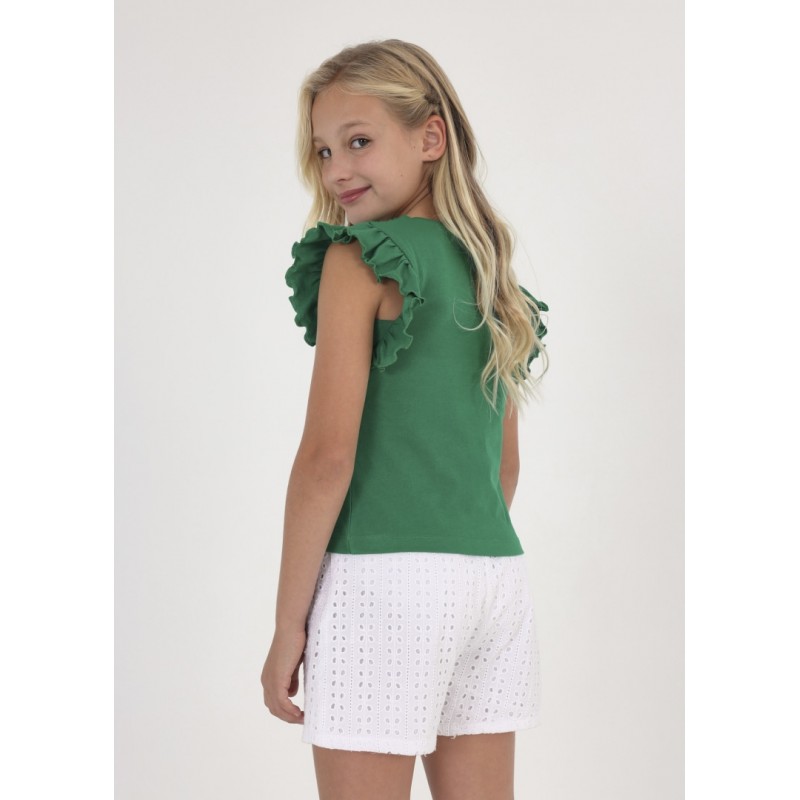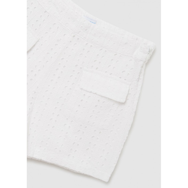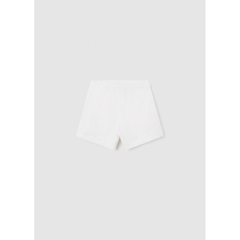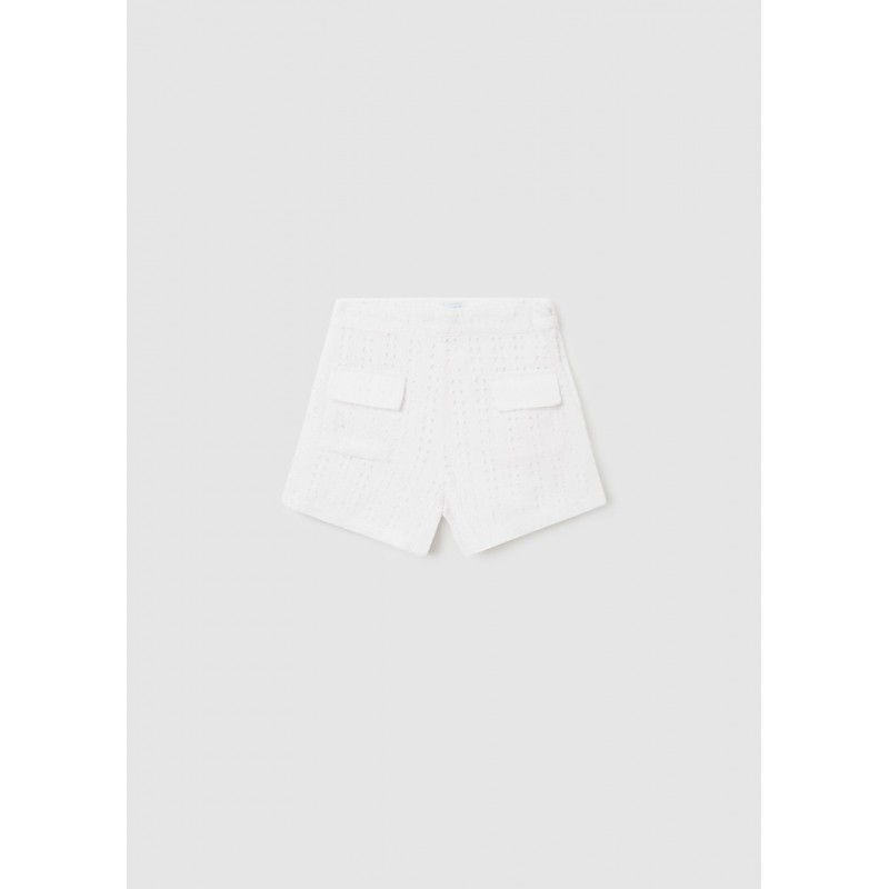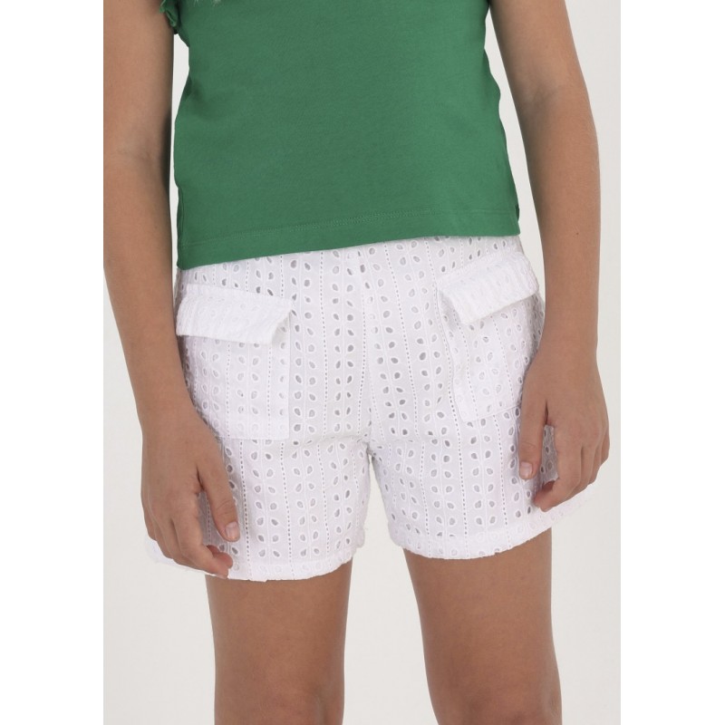 Pantalón de tipo short para chica. Cierre con cremallera invisible en el lateral de la prenda. Tejido perforado original y fresco. Bolsillos traseros funcionales.