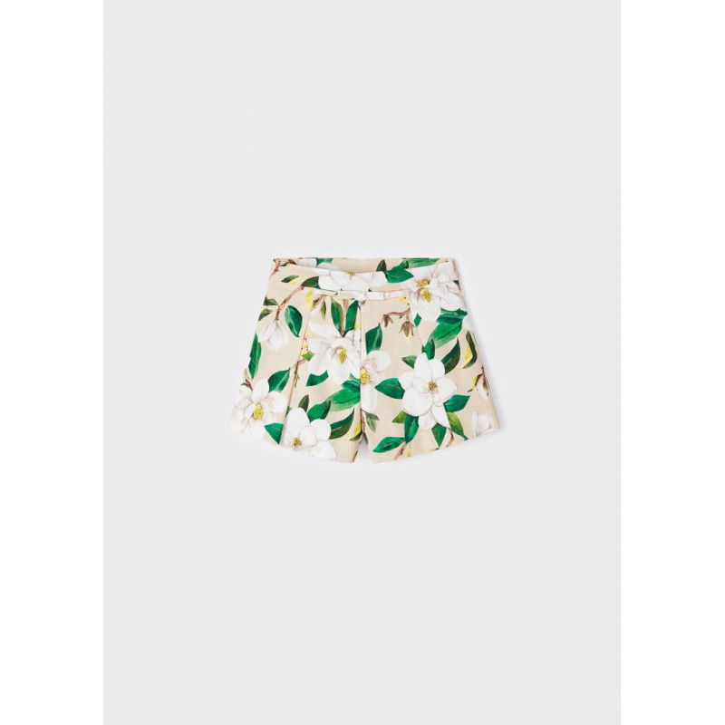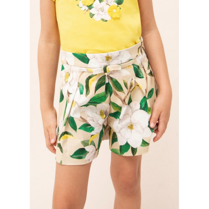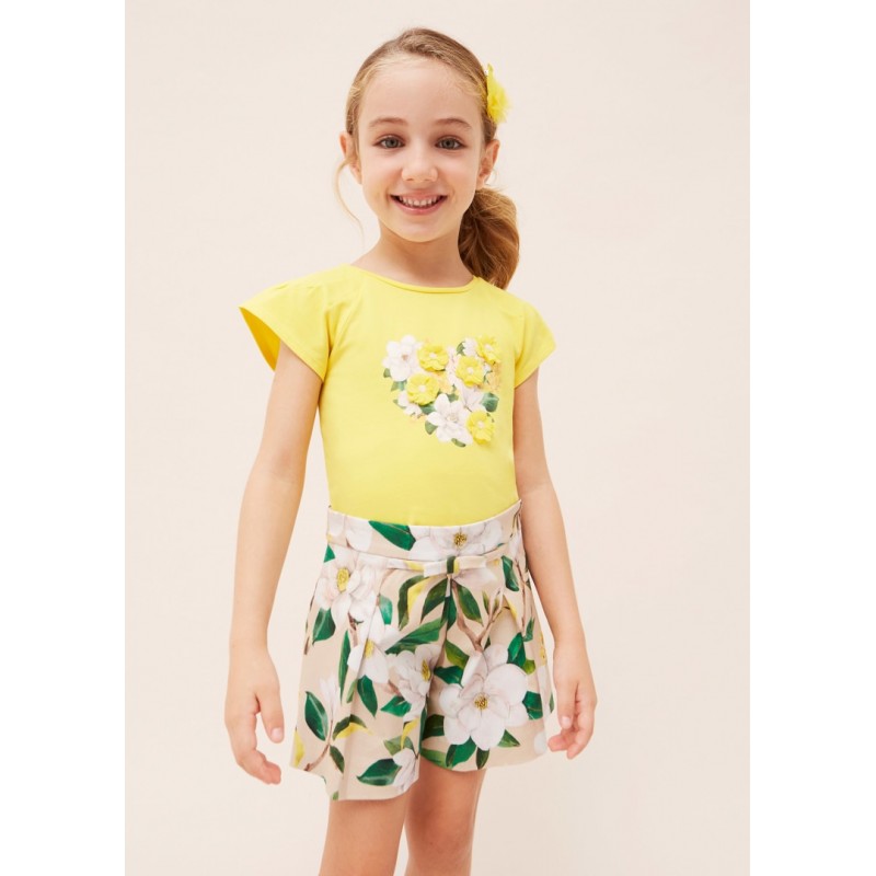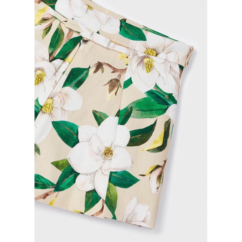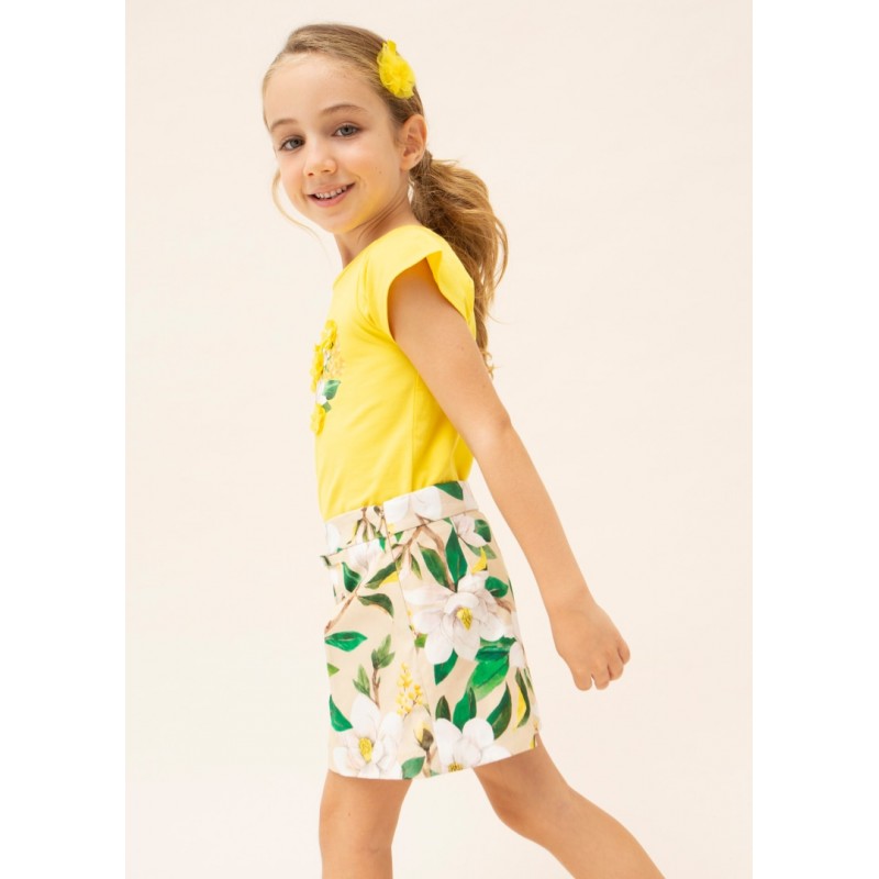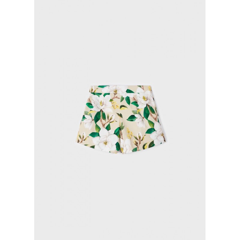 Cómoda falda pantalón para niña. Cierre con cremallera invisible en el lateral de la prenda. Suave tejido de algodón elástico. Diseño estampado.