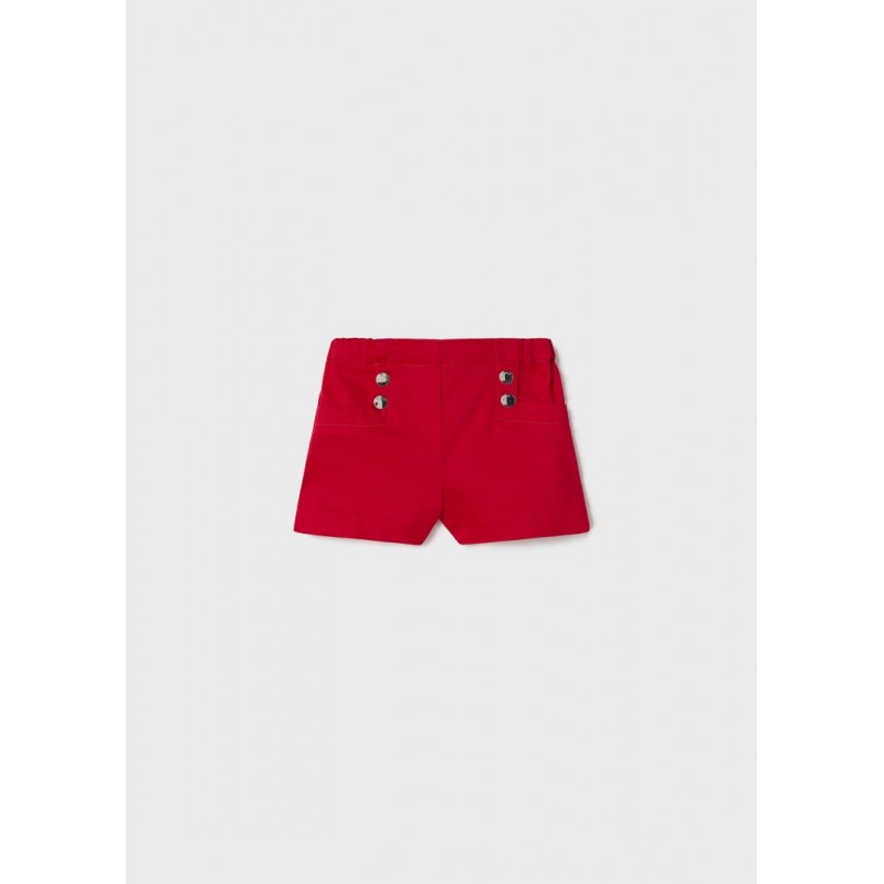 Pantalón de tipo short para bebé. Goma elástica regulable en la cintura para ajustar el talle. Suave tejido de algodón elástico. Bolsillos delanteros decorativos simulados. Elementos de adorno: botones decorativos.