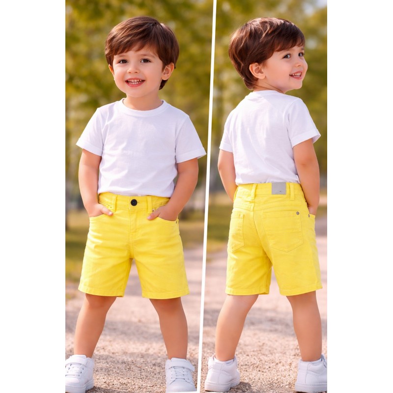 Prenda ECOFRIENDS, contiene algodón sostenible. Pantalón de tipo bermuda para niño. Cierre con cremallera y botón. Bolsillos funcionales en el delantero y en la parte trasera de la prenda.