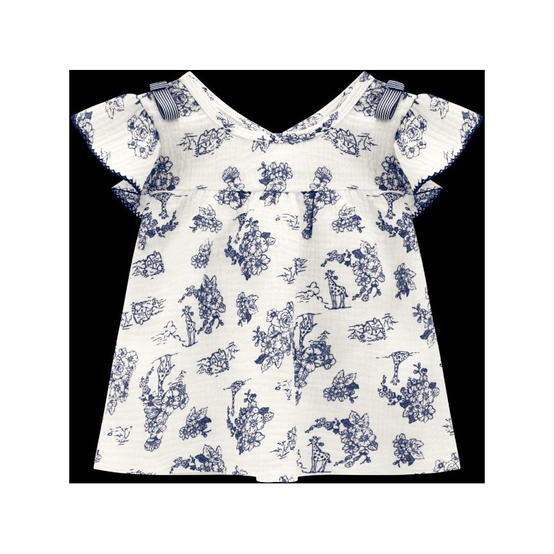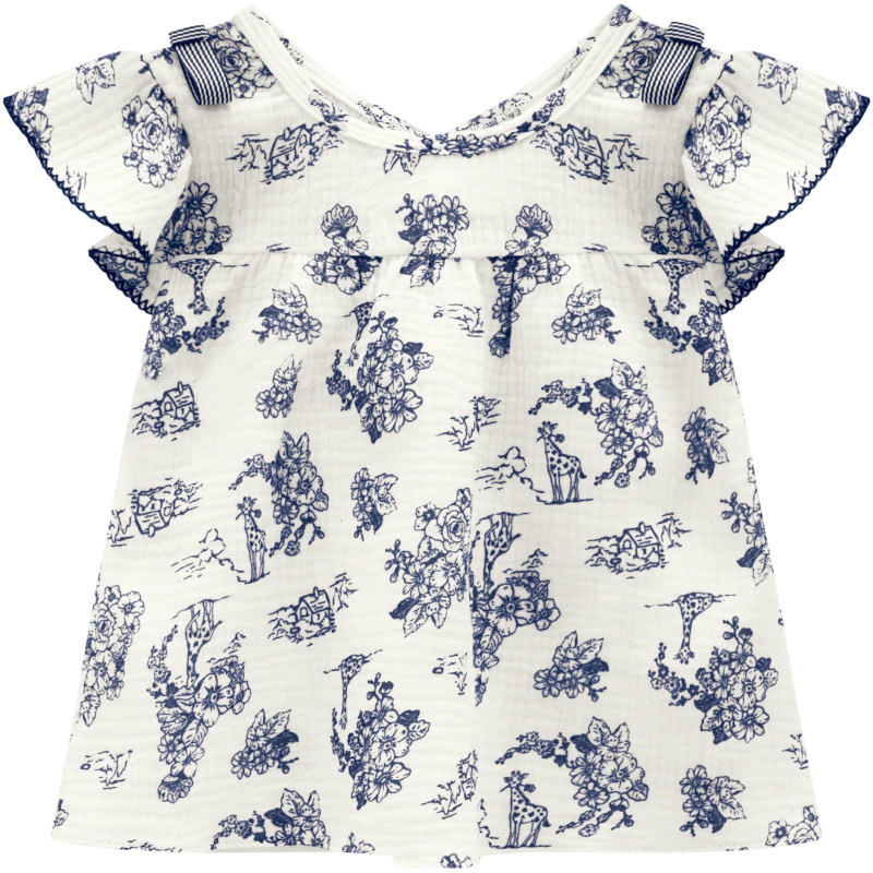 BLUSA EN LINO ESTAMPADA CON ESTAMPADOS AZUL Y SHORT