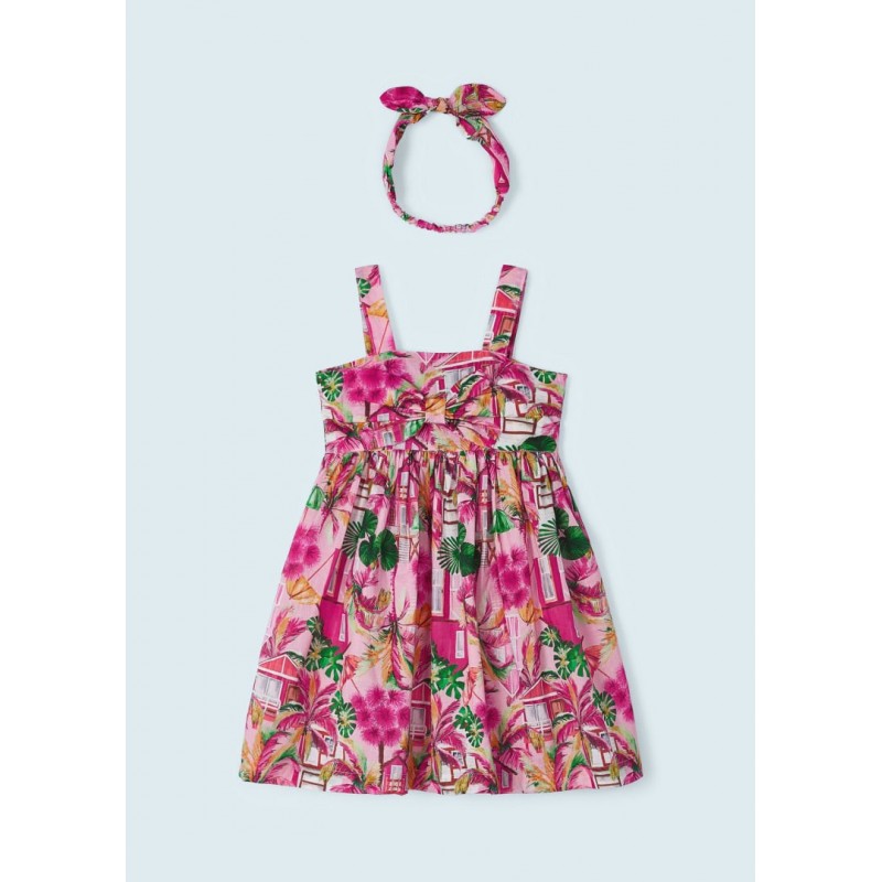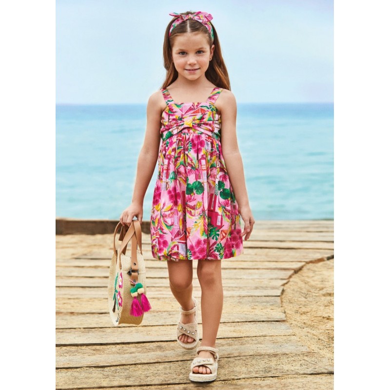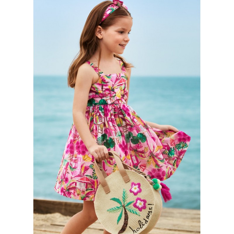 Vestido de tirantes para niña. Cuello cuadrado. Tejido 100% algodón. Diseño estampado.