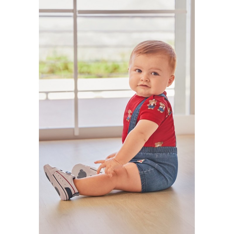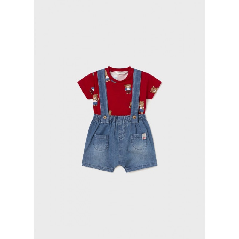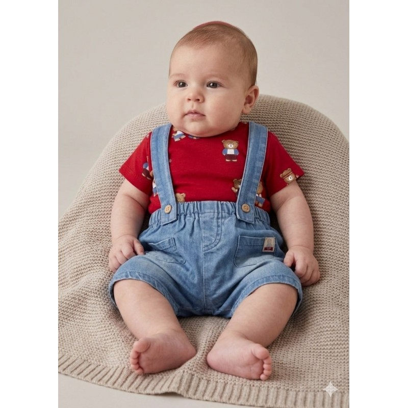Prenda ECOFRIENDS, contiene algodón sostenible. Conjunto de camiseta combinado con peto a juego para recién nacido.