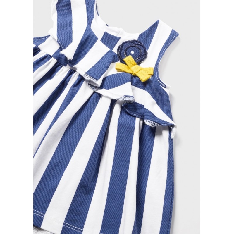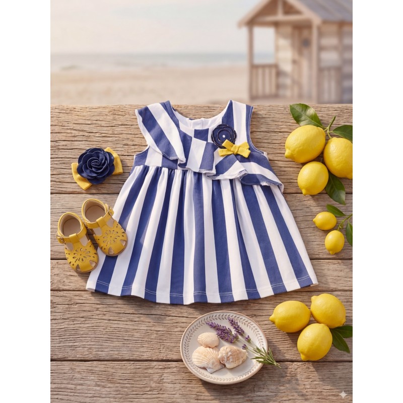 Prenda ECOFRIENDS, contiene algodón sostenible. Vestido sin mangas para recién nacido. Cierre con cremallera trasera invisible. Diseño estampado.