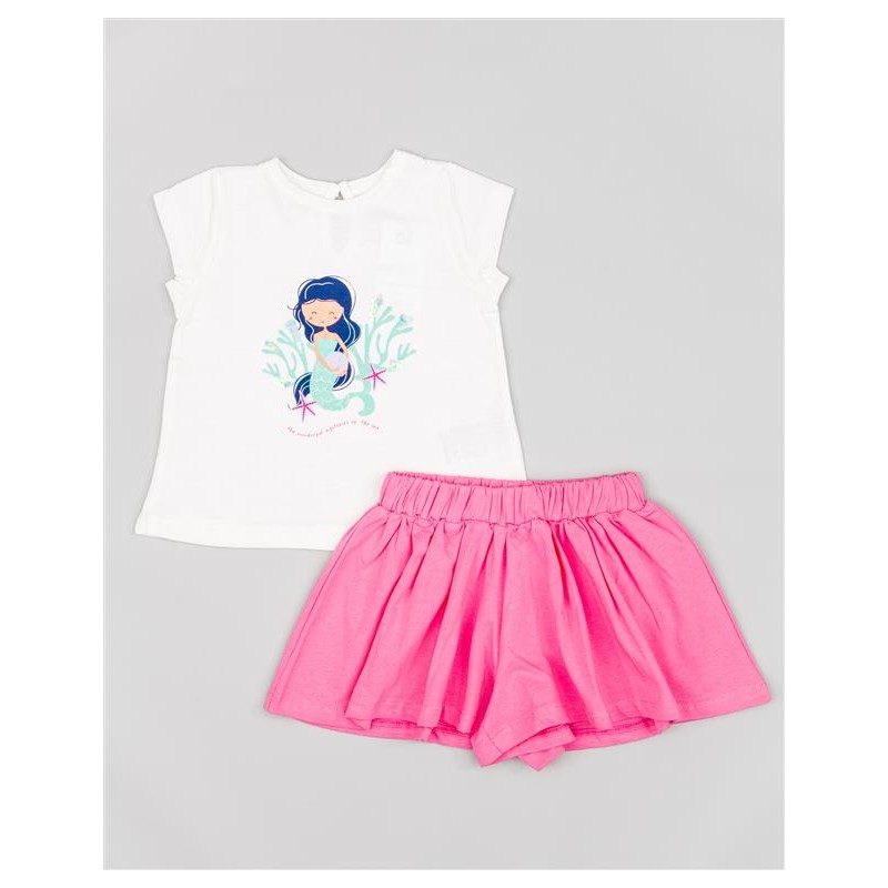 CONJUNTO BABY NIÑA BLUSA CON ESTAMPADO DE SIRENA Y SHORT ROSADO