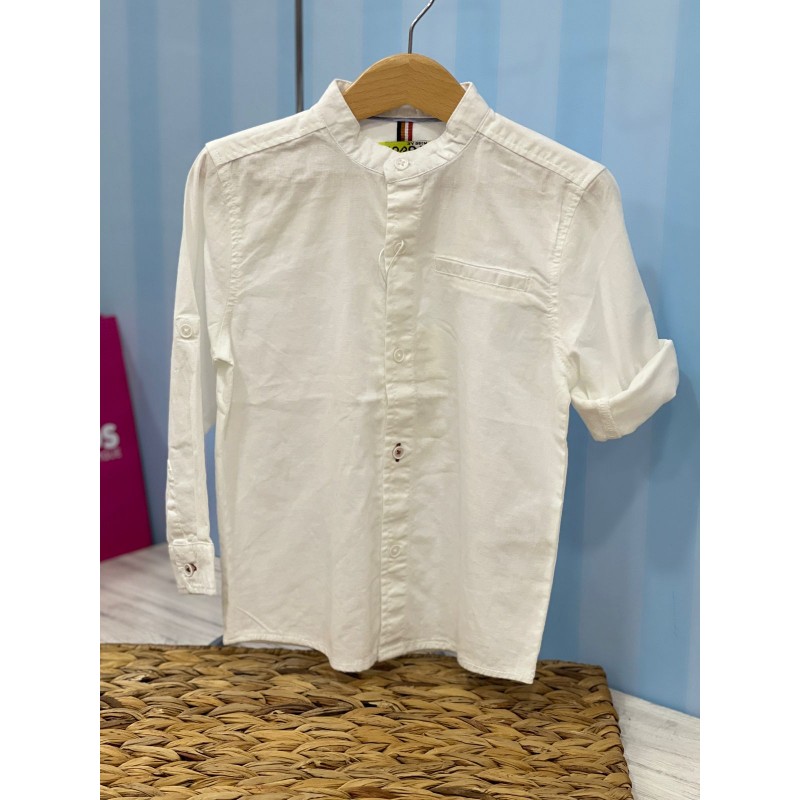 CAMISA MANGA LARGA EN LINO,CUELLO MAO