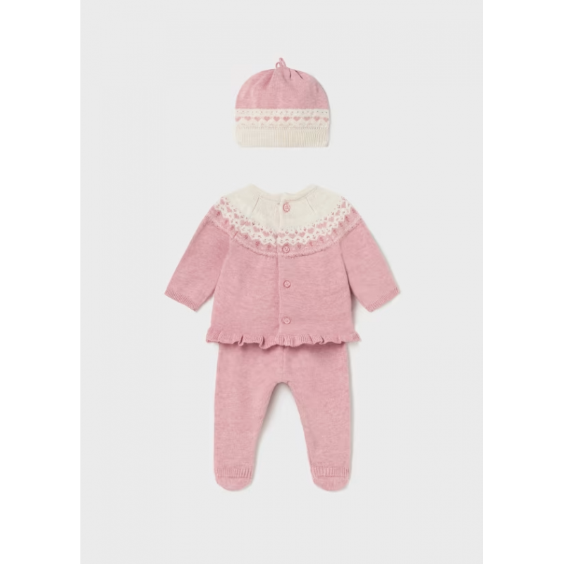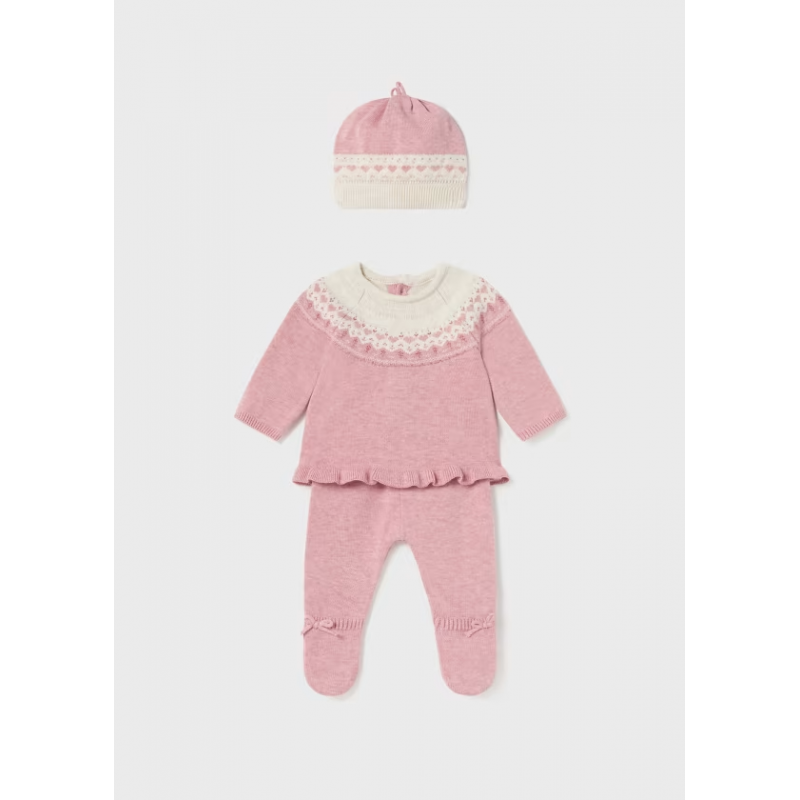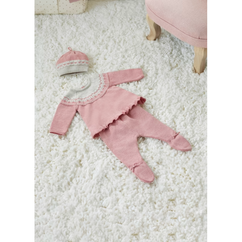 Original conjunto de tres piezas para recién nacido. Tejido 100% algodón.