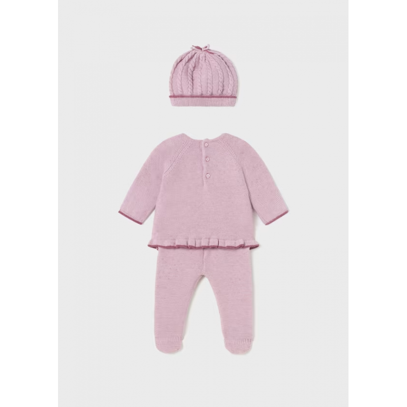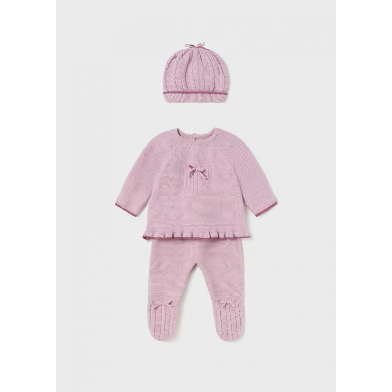 Original conjunto de tres piezas para recién nacido. Tejido 100% algodón.