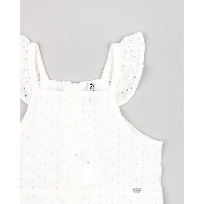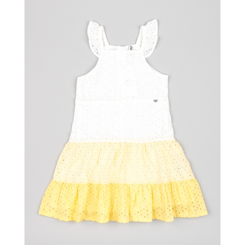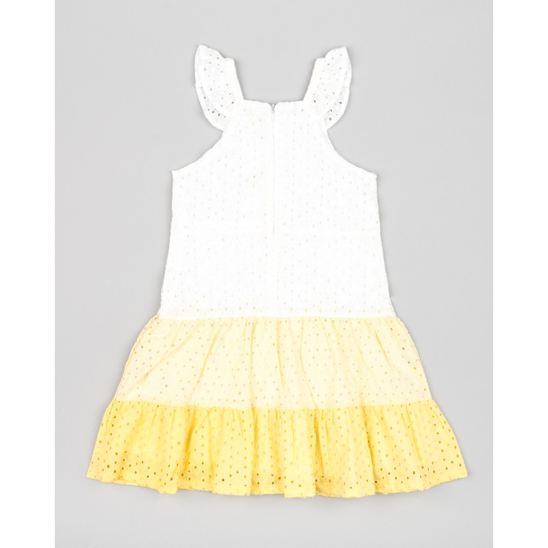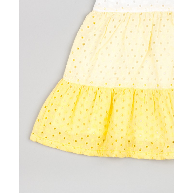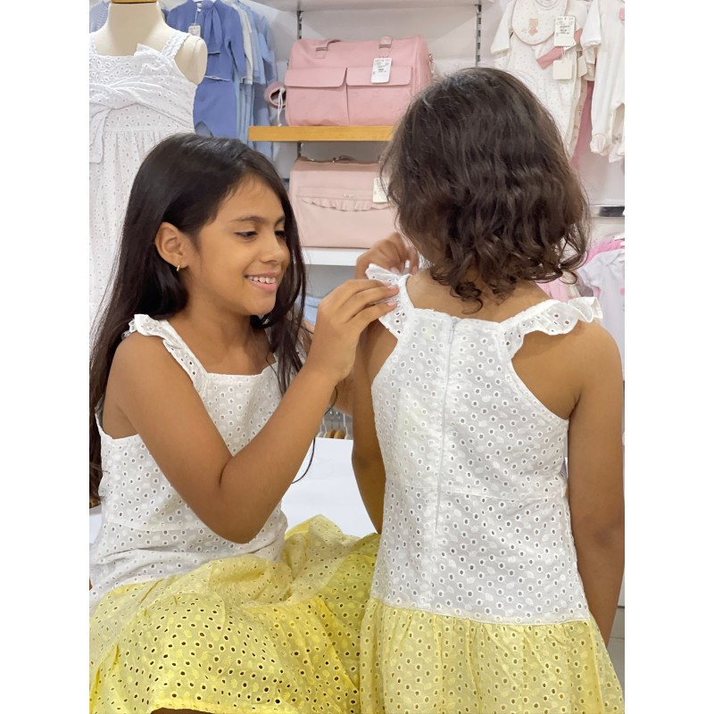 VESTIDO EN OJALILLO NIÑA COLOR BLANCO-AMARILLO