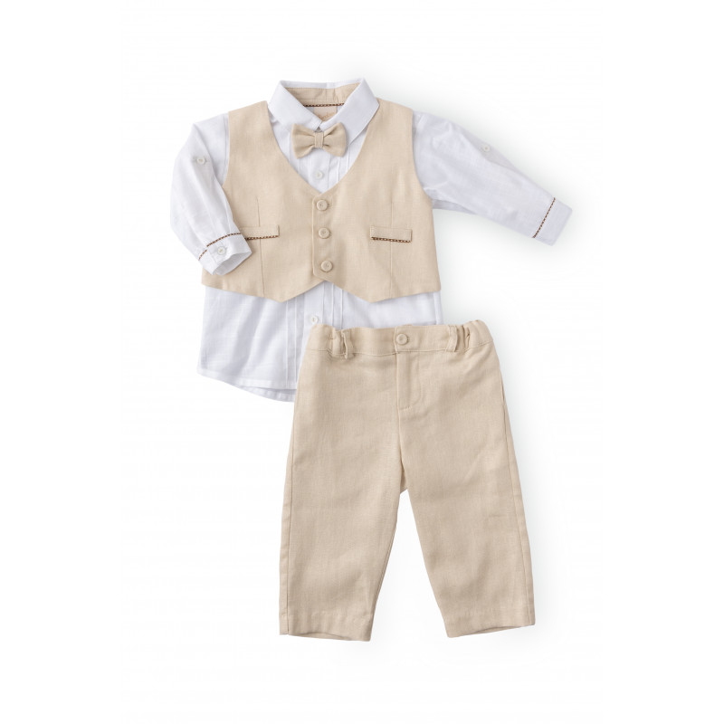 CONJUNTO BORDINO NIÑO CON CAMISA MANGA LARGA QUE SE PUEDO PONER 3/4, BLAZER CORTO Y PANTALON LARGO, EN LINO