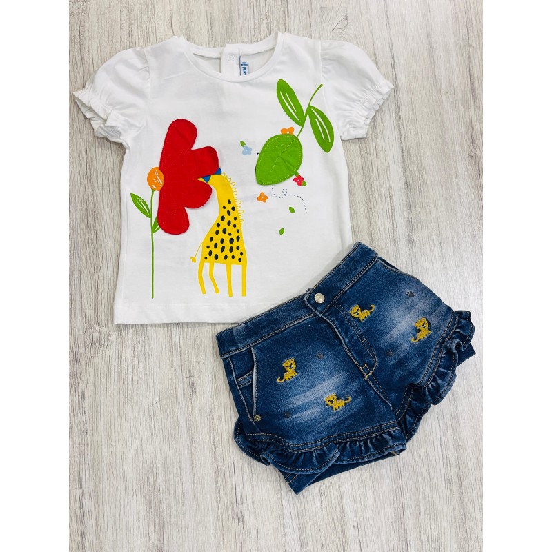 CONJUNTO BABY NIÑA SHORT ESTAMPADO DE ANIMALES Y BLUSA BLANCA