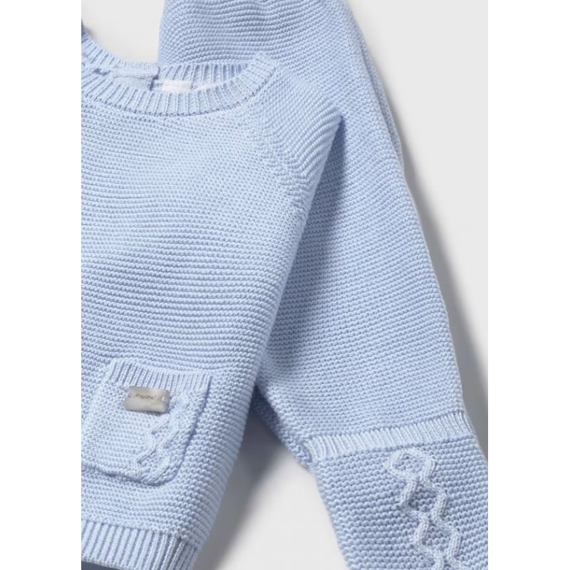 Jersey de manga ranglán para recién nacido. Cierre con botones en la espalda para facilitar la puesta de la prenda. Bolsillos funcionales en la parte delantera. Elementos de adorno: detalles trenzados.