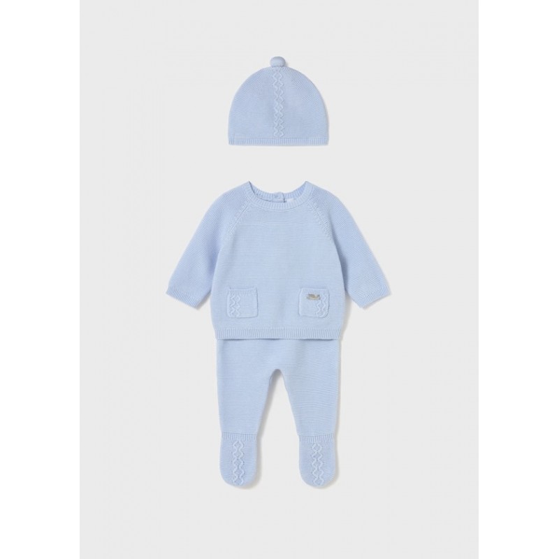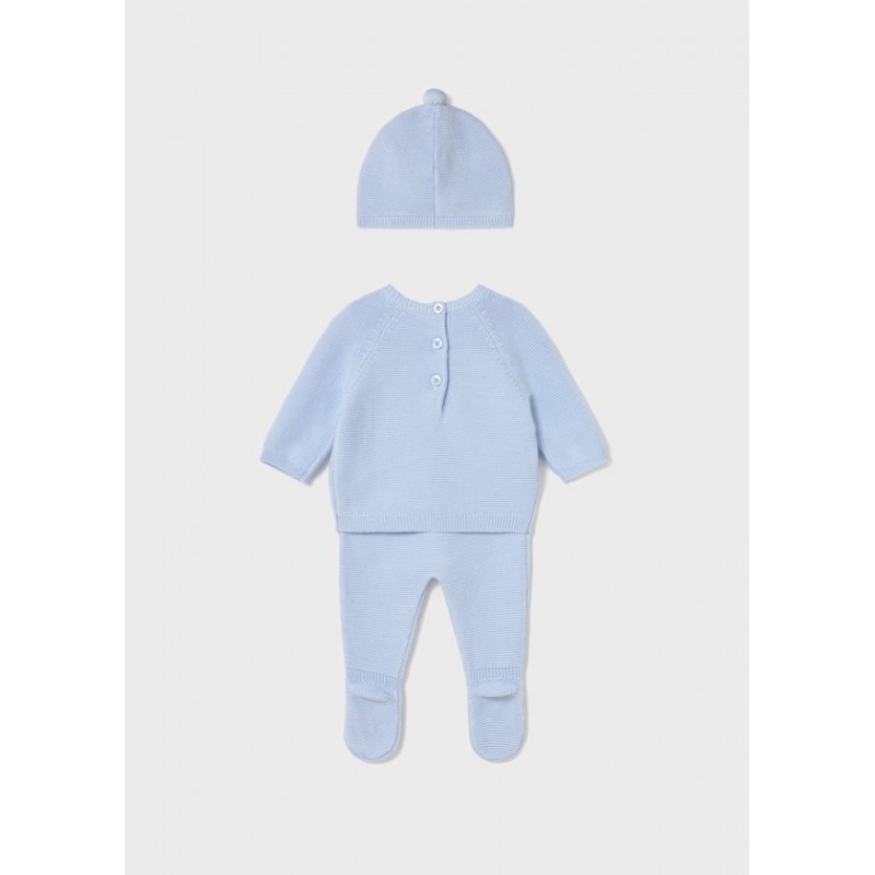 Original conjunto de tres piezas para recién nacido. Tejido de punto tricotosa de tacto suave y agradable.