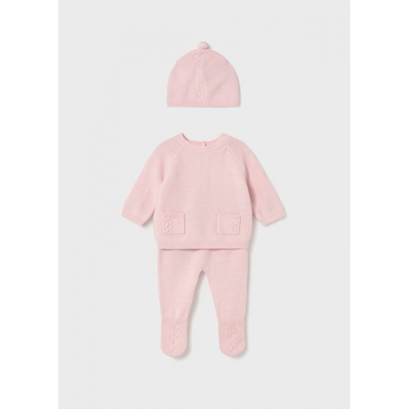 Original conjunto de tres piezas para recién nacido. Tejido de punto tricotosa de tacto suave y agradable.