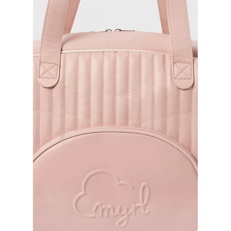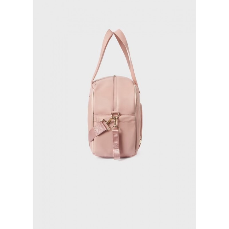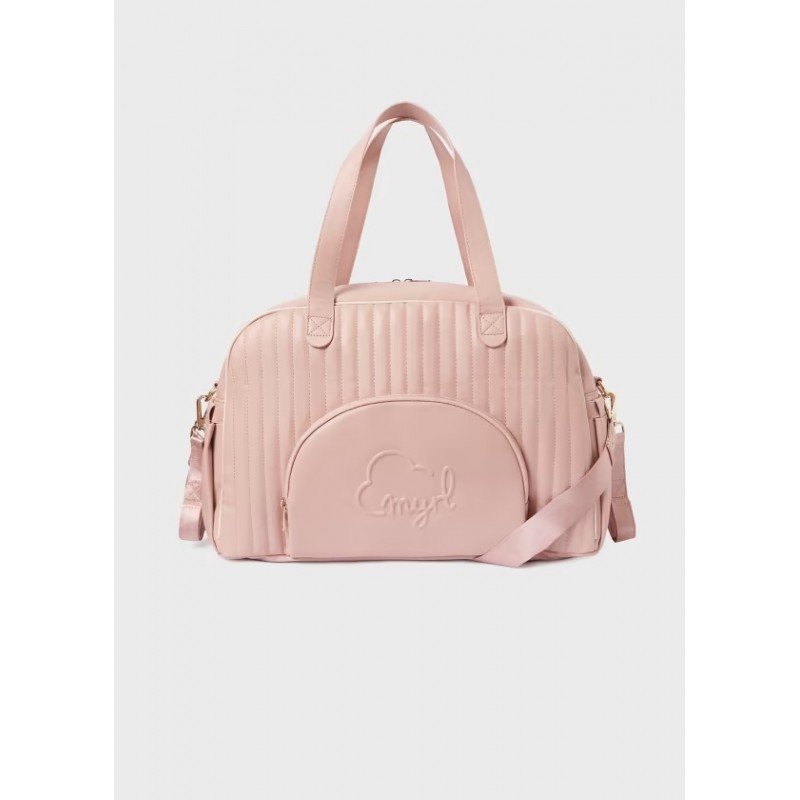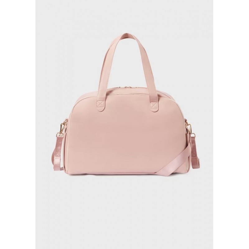Espacioso bolso de maternidad pensado para ayudarte en el día a día y guardar todo lo necesario para tu bebé. Moderno exterior de polipiel. Cuenta con asas de colgado para el carrito y otra larga de tipo bandolera, ambas desmontables. Bolsillo funcional en la parte delantera. Compartimento interior portachupete.