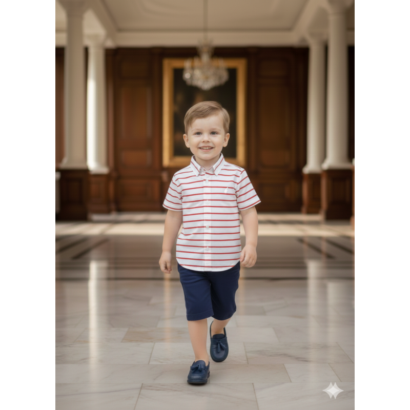 CAMISA MAGA CORTA, CON RAYAS ROJAS