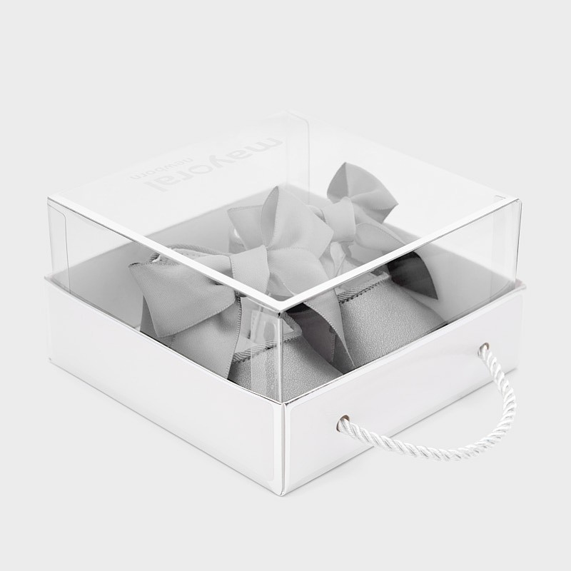 Zapatos de tipo merceditas para recién nacida niña de 0 a 18 meses, de estilo clásico y atemporal para sus estilismos más elegantes. Elementos de adorno: aplique de lazo. Este artículo se presenta en una caja de la línea Newborn ideal para regalar en ocasiones especiales.