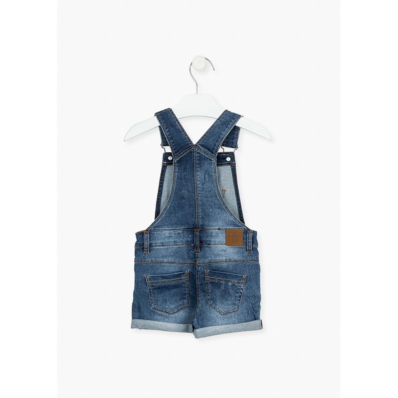 Vestido con lazo en la espalda para chica. Vestido vaquero de tirantes con volante. Elástico en la espalda. Etiqueta de marca cosida en el bajo.