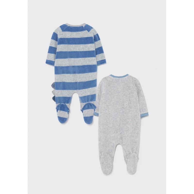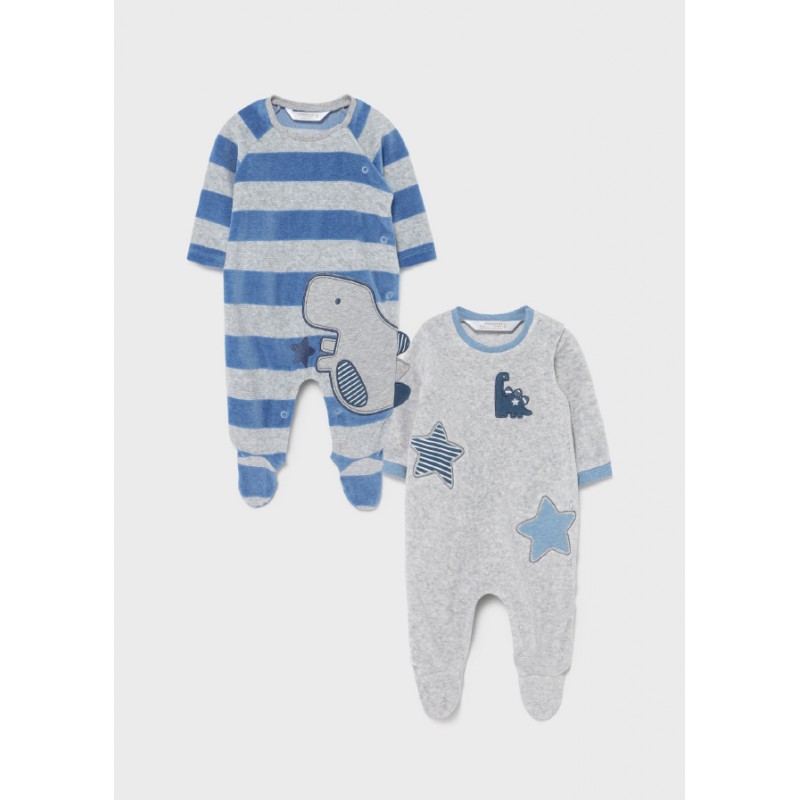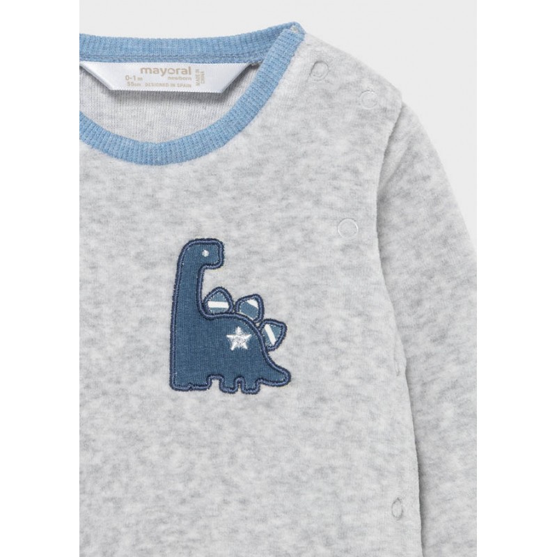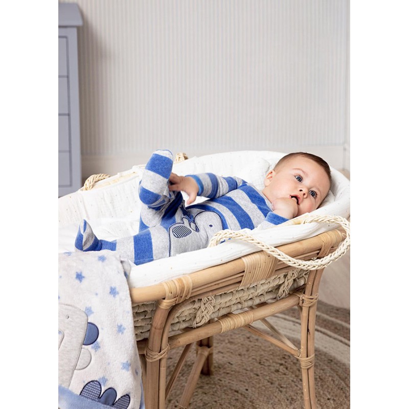 Pijama manga larga para recién nacido niño. Diseño con pies. Cuello redondo. Cierre lateral con botones a presión. Cierre con botones a presión en la entrepierna.